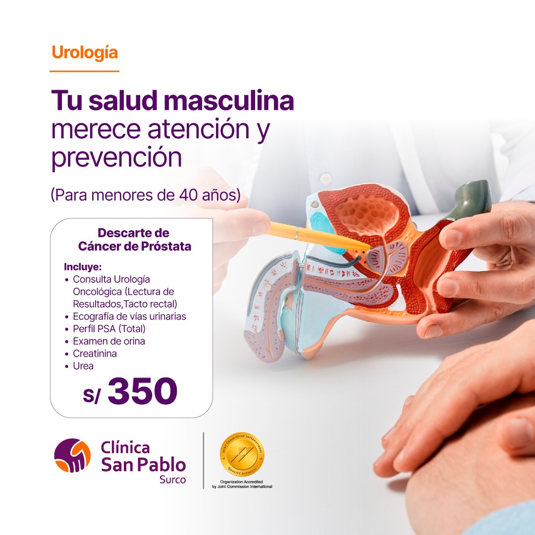Mencionar la promoción “Descarte de Cáncer de Próstata (menores de 40 años)” al momento de solicitar la cita o atención.